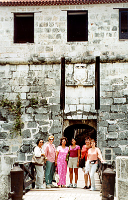 Outside the moat entrance to Castillo de la Real Fuerza: Sarah, Marilouise, Neelam, Sonia, Mary and Gerry.