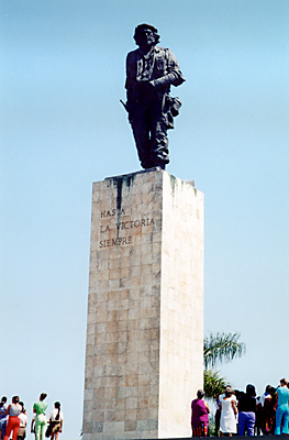 The bronze figure of Che has one arm in a sling, the other holding a gun, and is almost 23 feet tall.