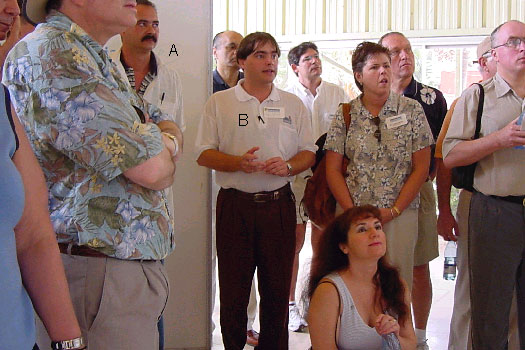 Dr. Reinaldo (A) is answering questions and Victor (B) is helping with translation.