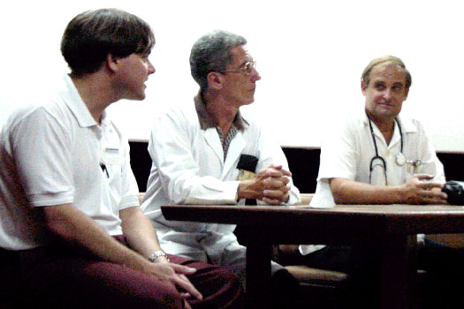 Discussion during the visit to the Hospital Miguel Enriquez. Right: Dr. Héctor Fránquiz (Director, Cardiology). | |||||